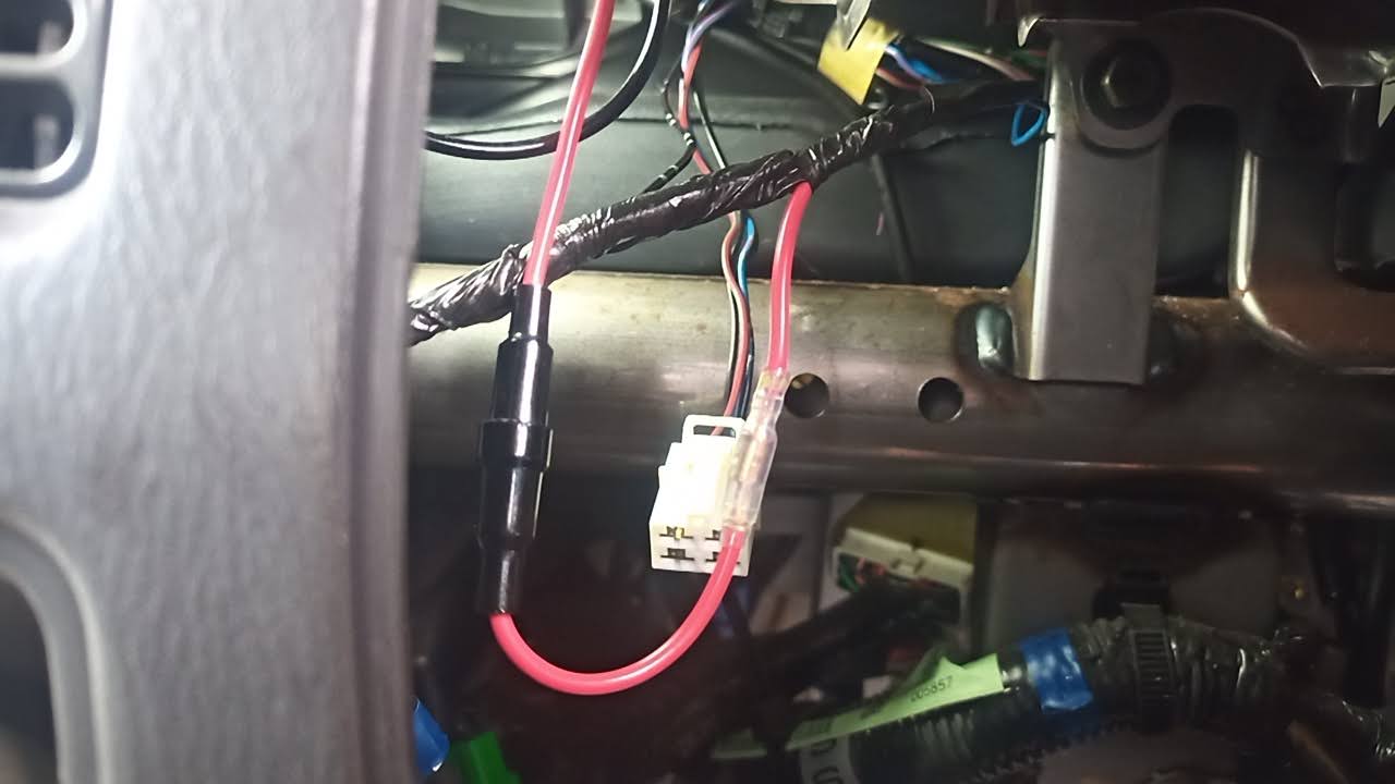 シガープラグの配線から分岐させます。 分岐は今後の汎用性も考えてギボシによる接続です。