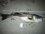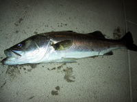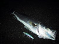 | 2003/8/15 22:00 | 某所 | 風と波で釣りづらい。。 開始10分ほどでファーストバイト! これはいけると踏んだがその後続かず。。。 そして痛恨のルアーロスト(><) ルアーをサスケ(赤金)にチェンジ。直後ヒット! しかしフックアウト~ ルアーロストにフックアウト。。。全くついてない(TOT その直後待望のゲッツ!40cm(R)のセイゴ君でした。 |