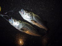 | 2003/5/11 4:00 | 柏崎港 西堤防 | 曲がり付近での釣行。 8時位まではまったく反応なし。。 先端付近ではサワラがあがっていた。 9時ごろよりイナダが上がり始めるがぱっとしない状況。 チェイスはしてきたもののバイトには至らず。その後も改善せず11時位に撤収。 残念ながらワラサも確認できなかった。 小型(15cmほど)のハナイカが沢山いたのでエギを用意しても良いかも?! |