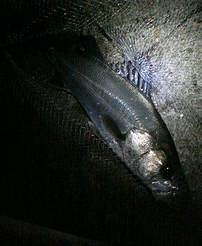 短期決戦でネットイン 40cmのチビっこシーバス。 その後はまったくあたりも無く撤収。