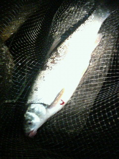 sadaさん、fujiさんと同行した。 開始早々隣でsada氏がシーバスがヒット! タモを入れる。