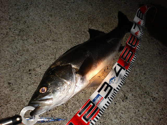 スレ掛かり・・・・ でかいと思ったのに~ シーバス33cm。。。 これで4目達成。 他の3目はこちら